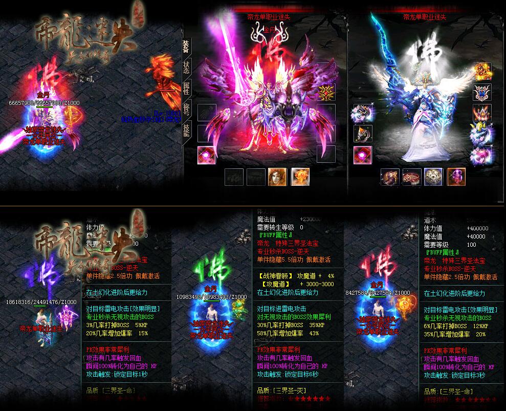 <249,251>〖公告〗欢迎来到帝龙单职业迷失;本服的装备好刷。元宝好打,所有顶级套武器衣服全无合成,全部靠打