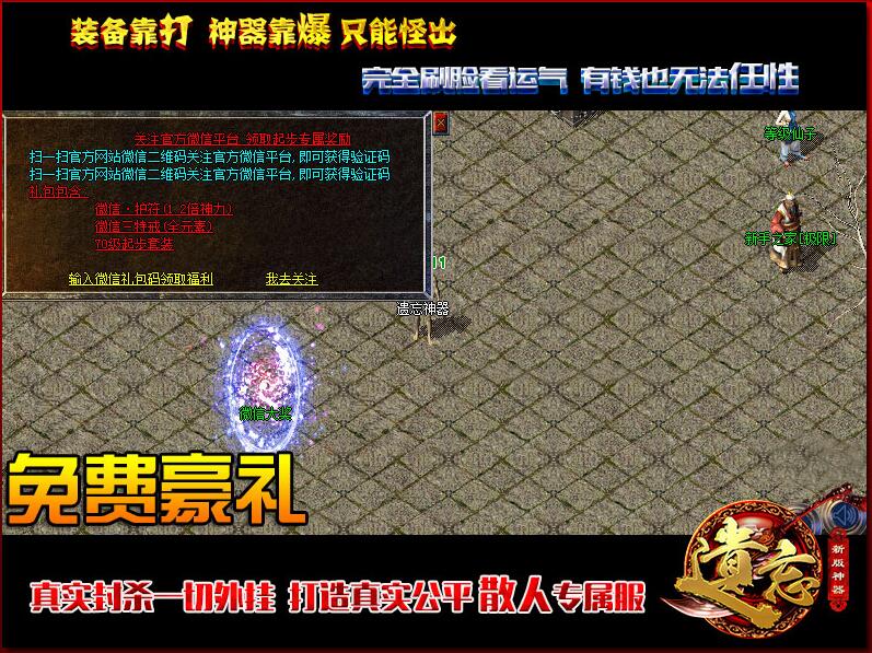 〖神功〗本服以主打8W8怪为主,主要看人品。免费玩家也有出头日。